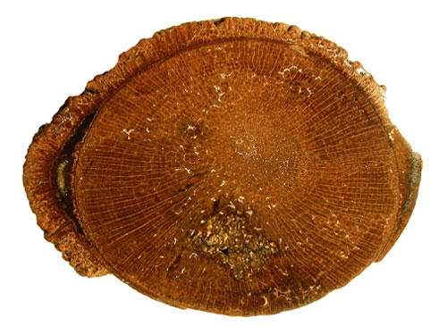 Træ - poleret, så de velbevarede åreringe ses.